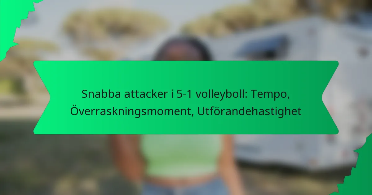 Snabba attacker i 5-1 volleyboll är dynamiska offensiva strategier som syftar till att överraska motståndarlaget med snabba spel. Genom att fokusera på tempo kan lagen störa defensiva formationer och skapa poängmöjligheter genom noggrann utförande och strategisk vilseledning.