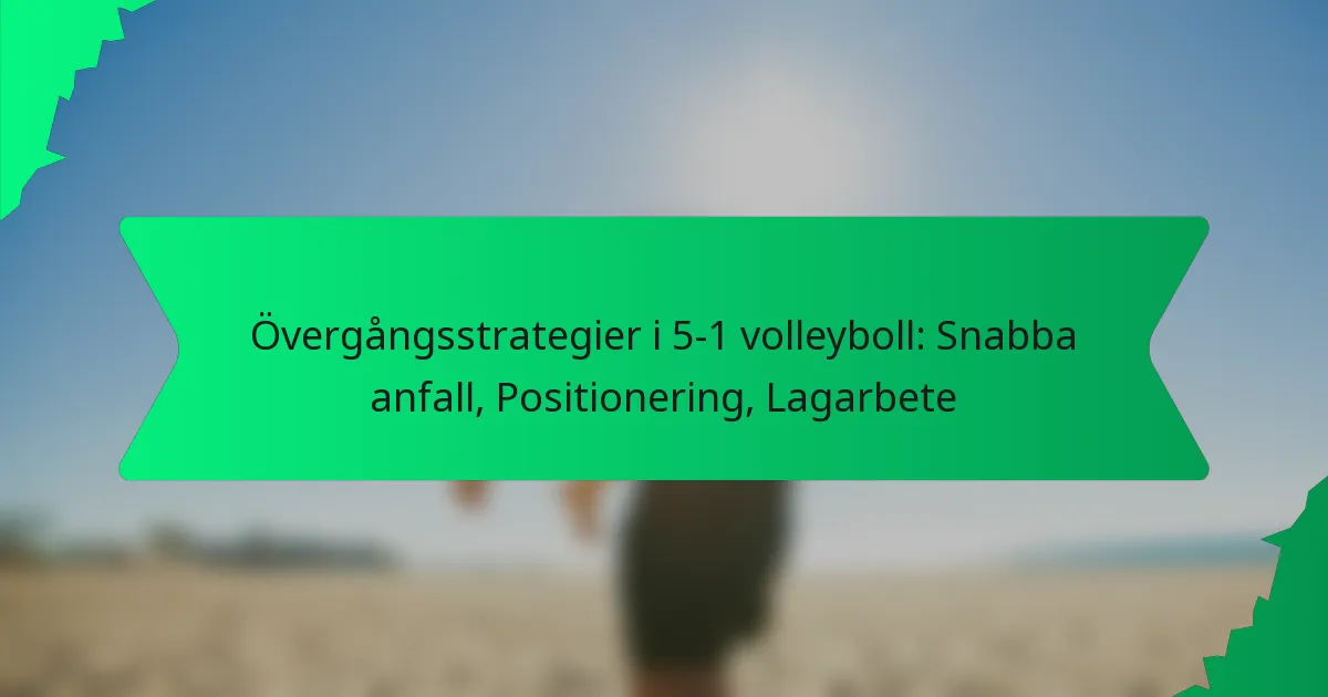 I 5-1 volleyboll är det avgörande att bemästra övergångsstrategier för att maximera poängmöjligheter och upprätthålla spelets momentum. Snabba genombrott, strategisk positionering och effektivt teamwork spelar centrala roller i att snabbt skifta från försvar till anfall, vilket gör det möjligt för lagen att utnyttja motståndarnas svagheter. Genom att fokusera på dessa element kan spelarna förbättra sin totala prestation och uppnå större framgång på planen.